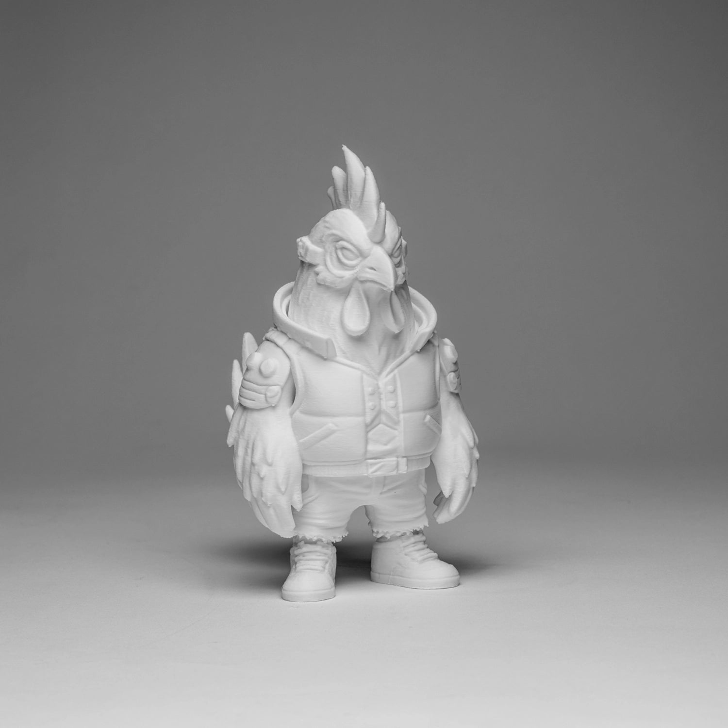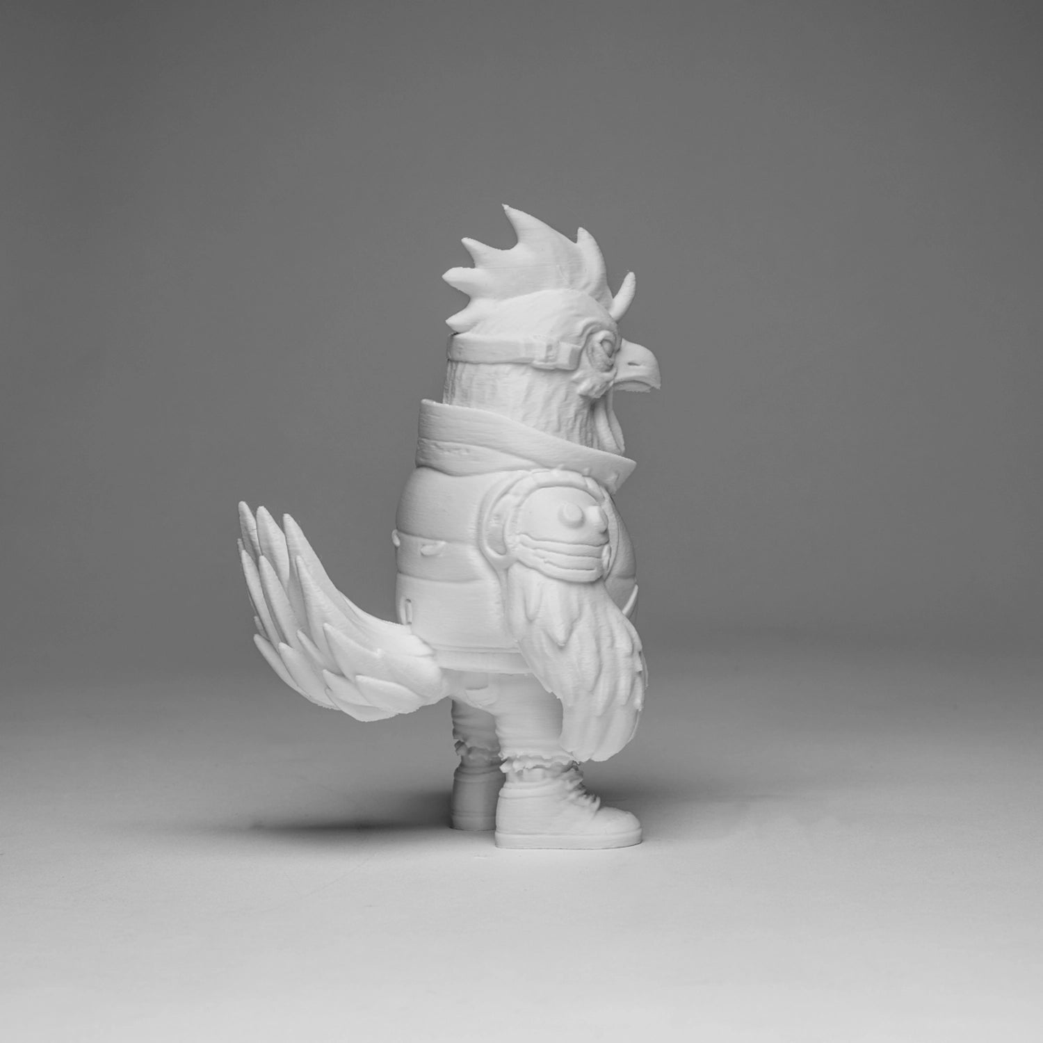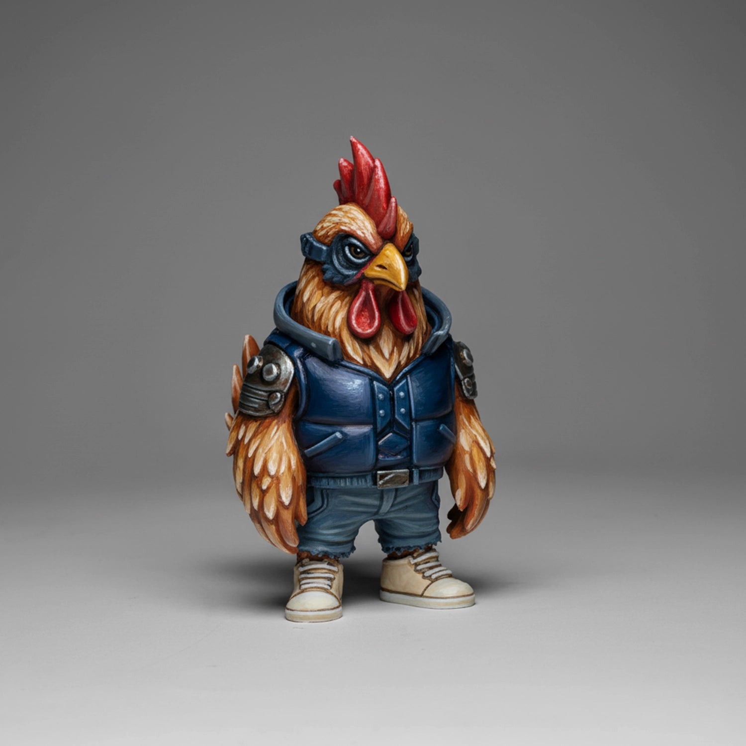 Born from the alleyways of a cyber city, CyberChi struts with confidence and feathers of fire. A street legend with a tough look and creative heart, always ready to rule the coop and color his world.